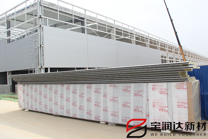 考慮到所需要的板材強度以及美觀性能,項目選用寶潤達聚氨酯側(cè)封巖棉墻板及屋面板。